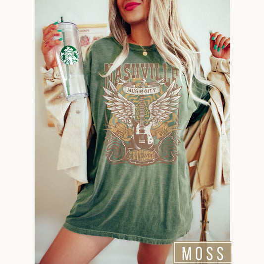 Nashville Tennessee Retro Guitar Comfort Colors Graphic T-Shirt