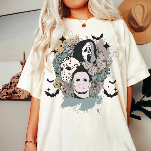Horror Floral Jason Voorhees - Michael Myers - Ghostface Graphic T-Shirt