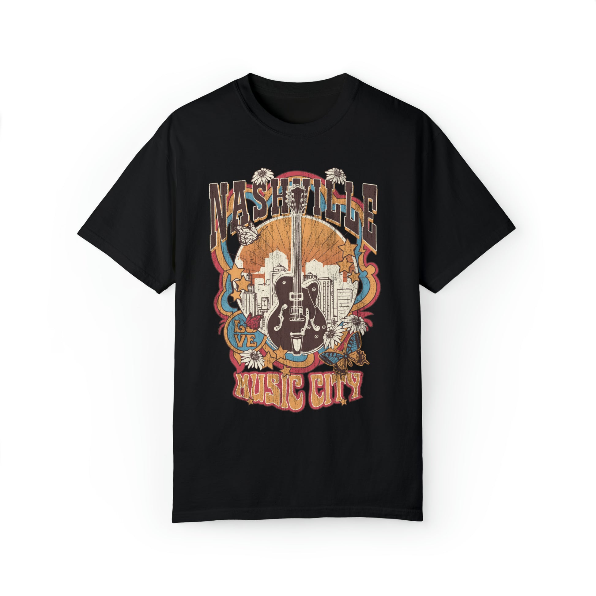 Experience Nashville's musical heritage in style with our Retro Style "Nashville Music City" Comfort Colors T-shirt. Celebrate country music's heart and soul with this vintage tee, perfect for your wardrobe. Embrace its comfort and retro charm, or wear it oversized as a chic t-shirt dress paired with your favorite boots. Channel Nashville's spirit and music magic – grab yours now! 🎸