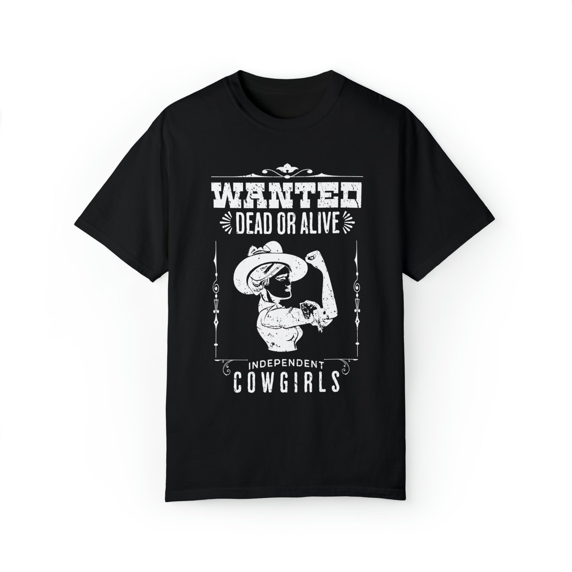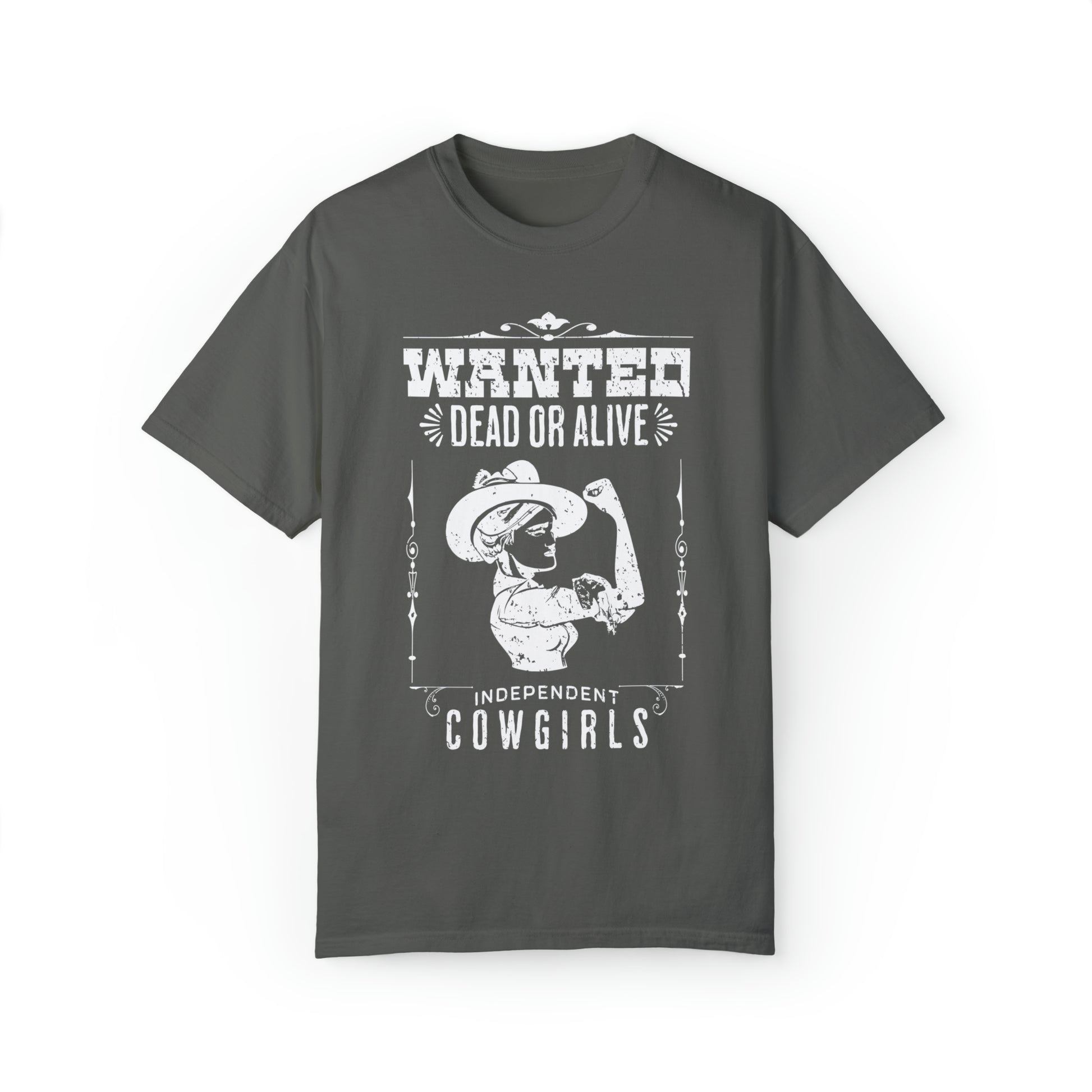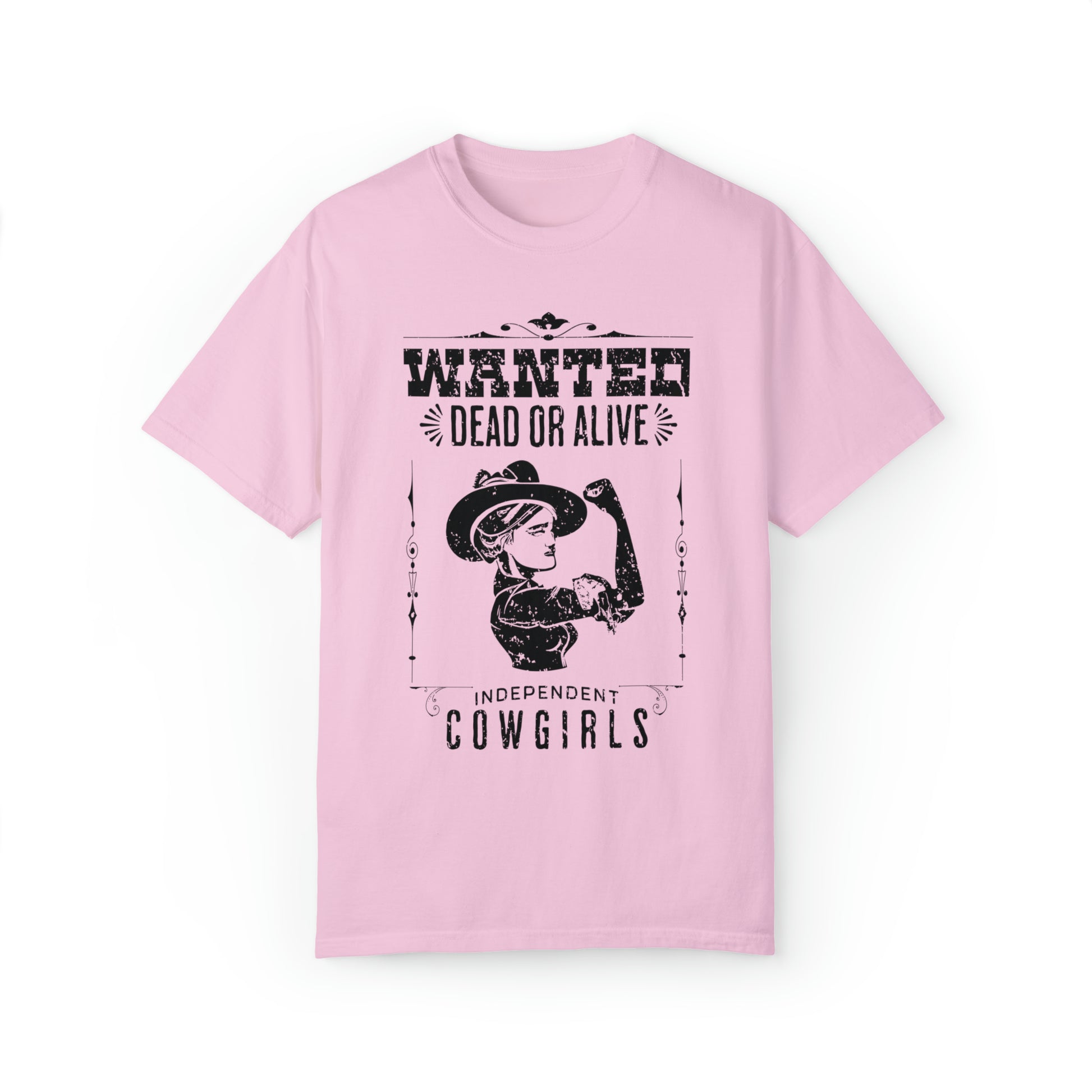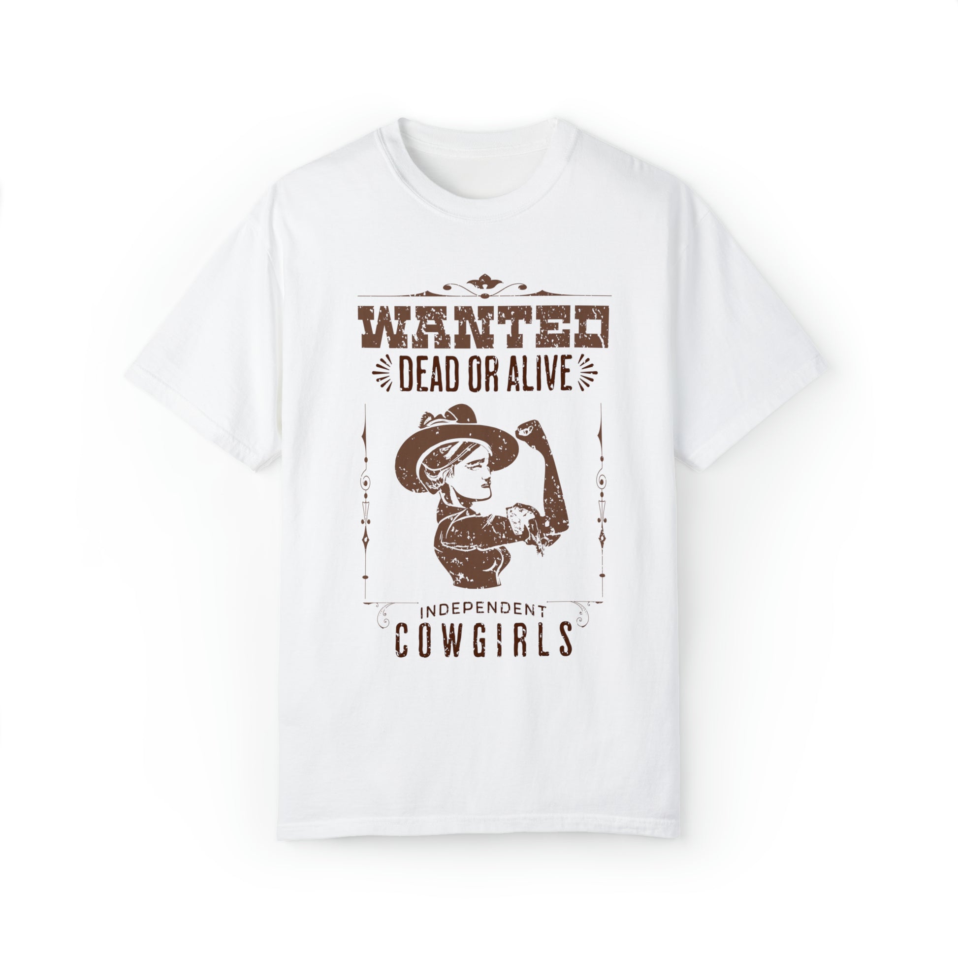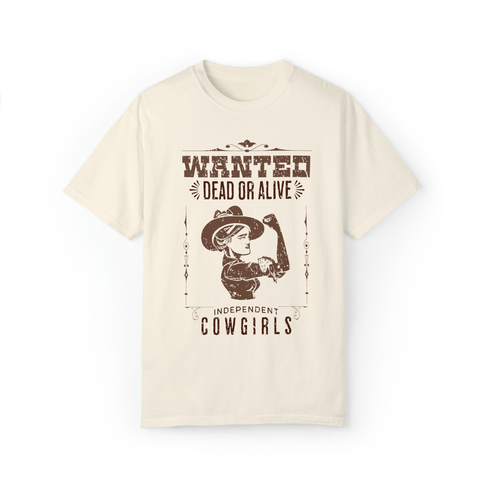 Channel your inner frontier spirit with our Western Graphic Comfort Colors Tee, reminiscent of a distressed vintage-style wanted poster. Featuring a strong Western woman flexing her muscle and the bold declaration "Wanted Dead or Alive Independent Cowgirls," this tee exudes empowerment and style. Crafted for comfort and designed to turn heads, this t-shirt is a must-have for those who embrace their untamed individuality. Shop now and wear your independence proudly with our Wanted Dead or Alive Independent Cowgirls Comfort Colors Tee.